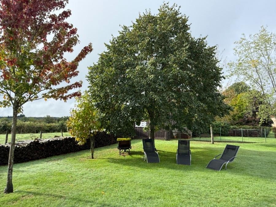 Indépendante et sans vis-à-vis, la maison est entourée d'un terrain plat entièrement clos, en pelouse, agrémenté d'arbres de diverses essences.