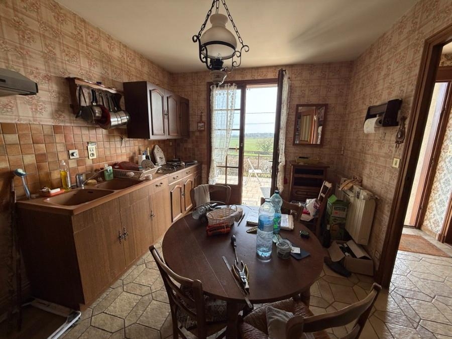 La salle à manger est muni d'un insert utilisé en chauffage central et relayé par une chaudière fuel.